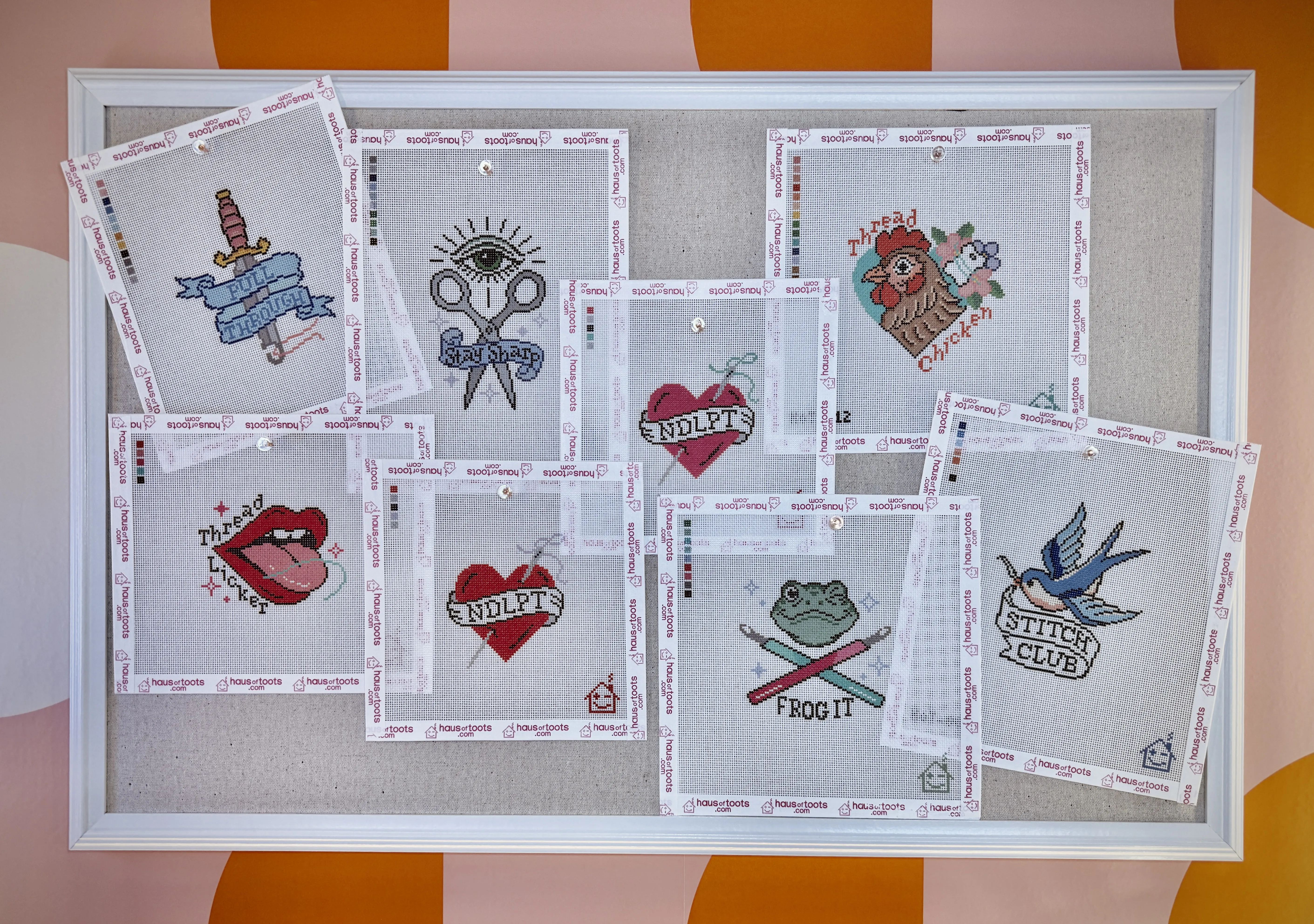 A collection of bold, punchy canvases with tattoo-flash energy and plenty of personality.